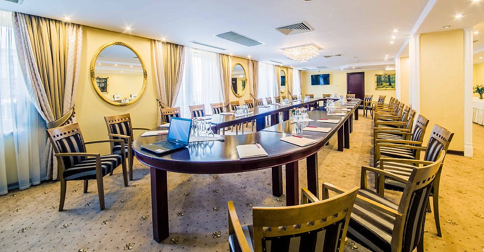 The banquet hall is on the sixth floor of the building No.2 of the Hotel Minsk. The banquet hall has the capacity of 36 seats. The area of the hall is 104,8 sq.m. It was re-opened after a complete renovation in August 2018.